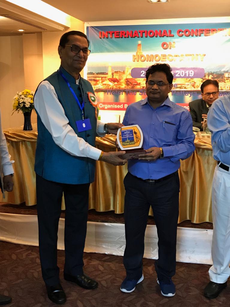 रिसर्च सोसायटी आफ होम्योपैथी जिला अध्यक्ष डॉ वीके वर्मा को होम्योपैथी साइंस कांग्रेश सोसायटी द्वारा थाईलैंड के पटाया शहर में आयोजित अंतर्राष्ट्रीय सेमीनार में उनके योगदान के लिए प्रशस्ति पत्र और प्रमाण पत्र देकर सम्मानित किया गया डॉ बीके वर्मा ने हेपिटाइटिस बी के कारण एवं निवारण पर शोध पत्र प्रस्तुत किया जिसे दुनिया के विभिन्न हिस्सों से आए होम्योपैथी की वरिष्ठ चिकित्सकों ने सराहा सेमिनार संयोजक डॉ अनुज वर्मा के संयोजन में भारत के लगभग 50 से अधिक चिकित्सक सेमिनार में हिस्सा लेने के लिए विभिन्न शहरों से गए थे और उन लोगों ने विभिन्न रोगों पर अपना शोध पत्र प्रस्तुत किया सेमिनार में पूर्व होम्योपैथी निदेशक डॉक्टर तनवीर हुसैन के साथ ही देश के विभिन्न हिस्सों से अनेक चिकित्सक अपने शोध पत्र प्रस्तुत किए डीके वर्मा को मिले सम्मान से पूरे उत्तर प्रदेश के बड़े बड़े हिस्सों से बीके वर्मा के पास बधाई पत्र आ रहे हैं सरदार पटेल संस्थान के महामंत्री डॉ वीके वर्मा को सरदार पटेल सेवा संस्थान बस्ती की तरफ से भी ढेर सारी मुबारकबाद दी है